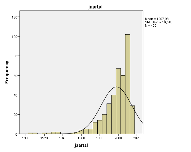 verdeling in jaartallen van de 400 arresten.